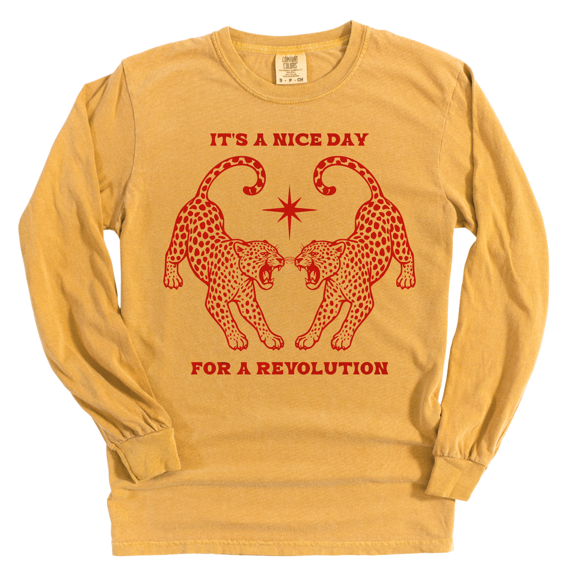 Vintage dyed, heavyweight Comfort Colors® Unisex* Long Sleeve 6.1 oz/yd² 100% ring-spun US cotton, pre-shrunk fabric, ethically sourced and harvested.